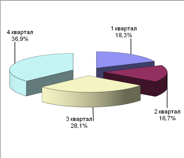 Рис. 6 - Квартальная структура объема продаж ООО «Торговый Дом «Союз» в 2010 г.